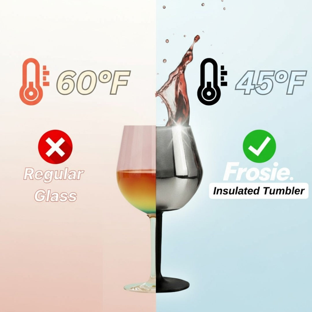 Regular glasses warm up around 5°F every 10 minutes—so your ice cold drink turns into a warm, gross mess before you're even halfway done. Frosie's double-wall insulation keeps your drink cold for hours, so every sip tastes just as good as the first.